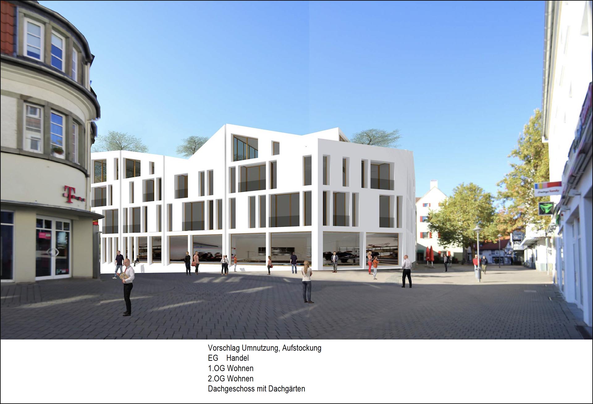 5. Falls möglich die Nutzung des jetzigen Kaufhauses ändern und das Gebäude aufstocken in:
